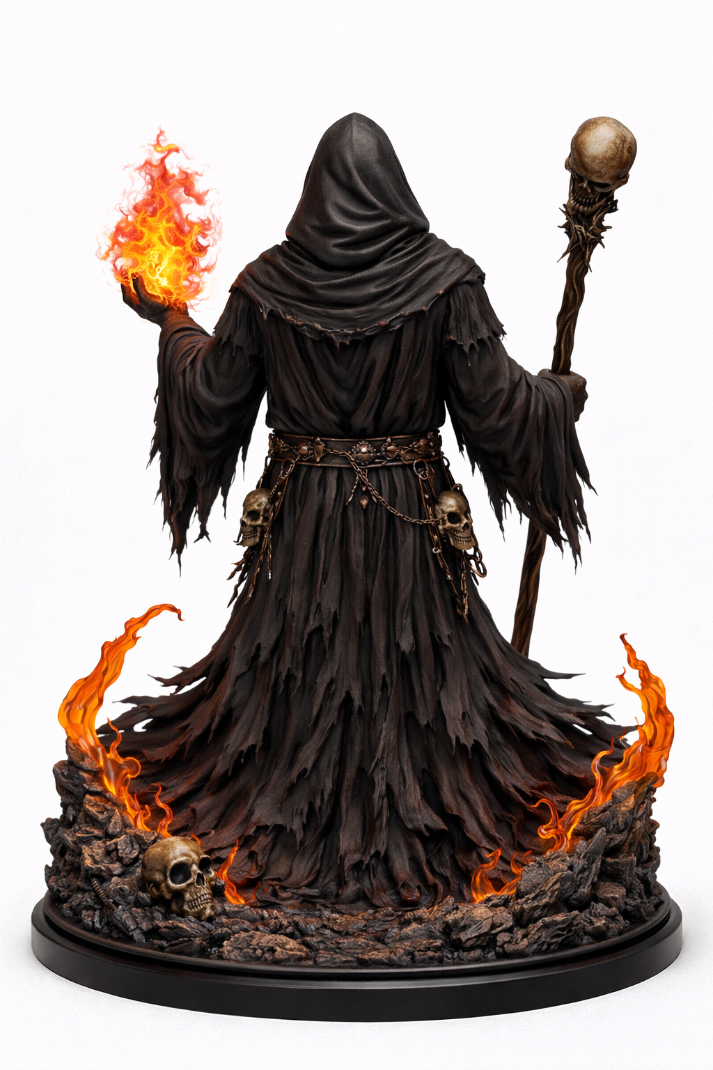 Multi-part sculpt with staff, skull, chains, and layered robes